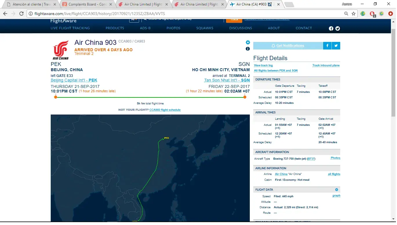 They arrived 2 hours late to our destination (CA903 - HCMC airport, 22nd September 2017) with no explanation or apologizes at all. We arrive at 2am, which was really late for a foreigner who needs to look for a taxi to arrive safe to the Hostel.