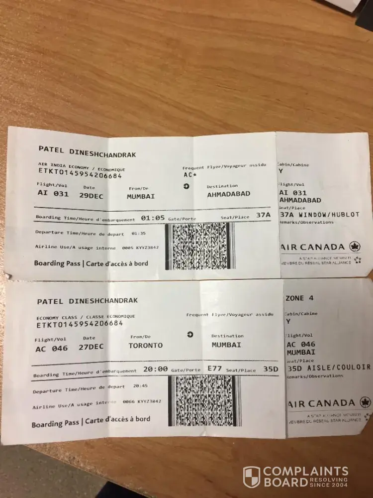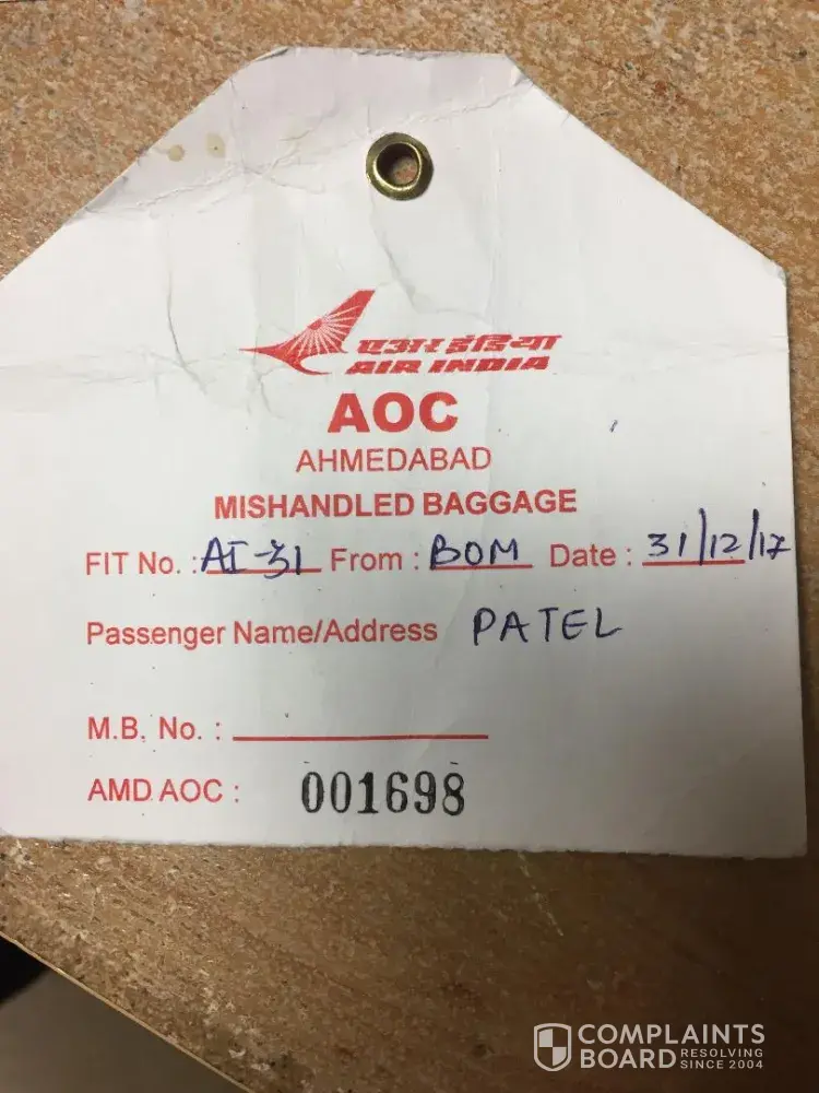 I complained Air India at Ahmedabad Airport in India but they said to me to complain in Mumbai Airport. So when I was suppose to depart from Mumbai airport, my flight got delayed on 13th February so I did not have time to complain at the Mumbai airport cause of two hour delay.