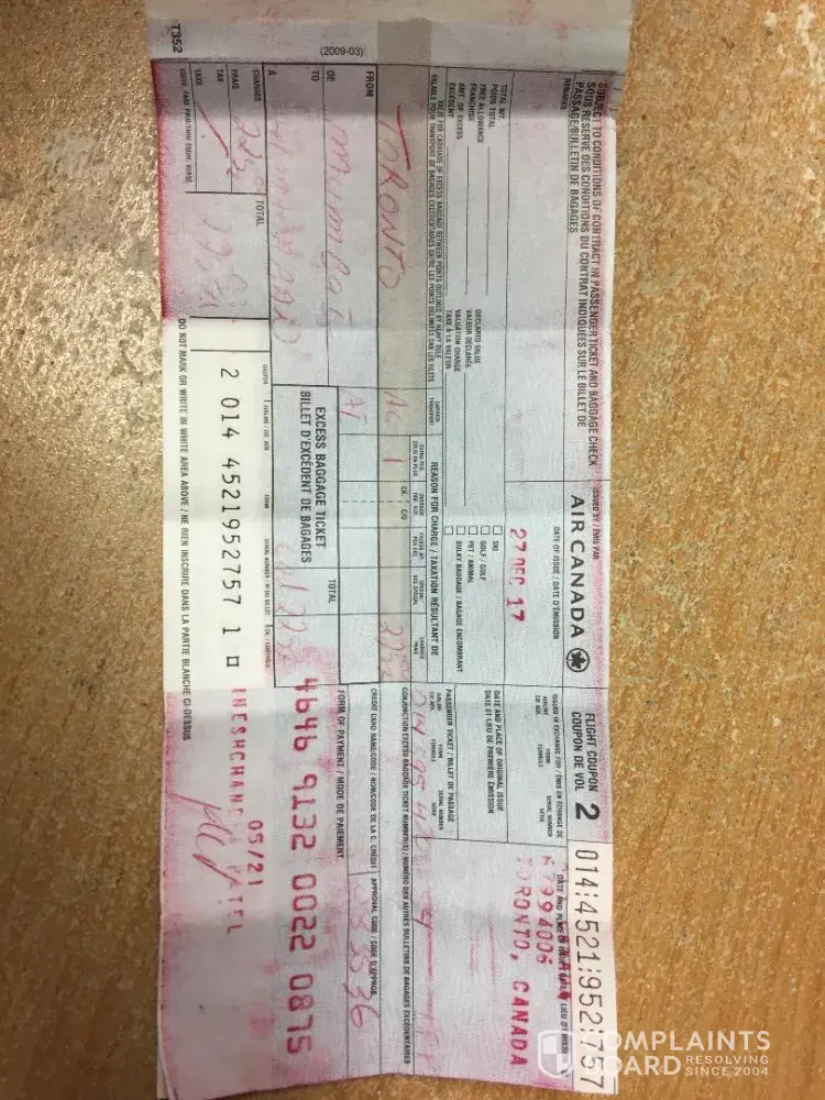 As you can see Air India is not following any Tariff or selected carrier's (united Airlines) baggage policy and ripping off customers by insanely charging undue baggage charges and mentally harassing consumers travelling with little kids at Airport . Please look into this matter and refund undue baggage charges. Please let me know if you need more documents showing 2 bags allowed to/from india to canada.