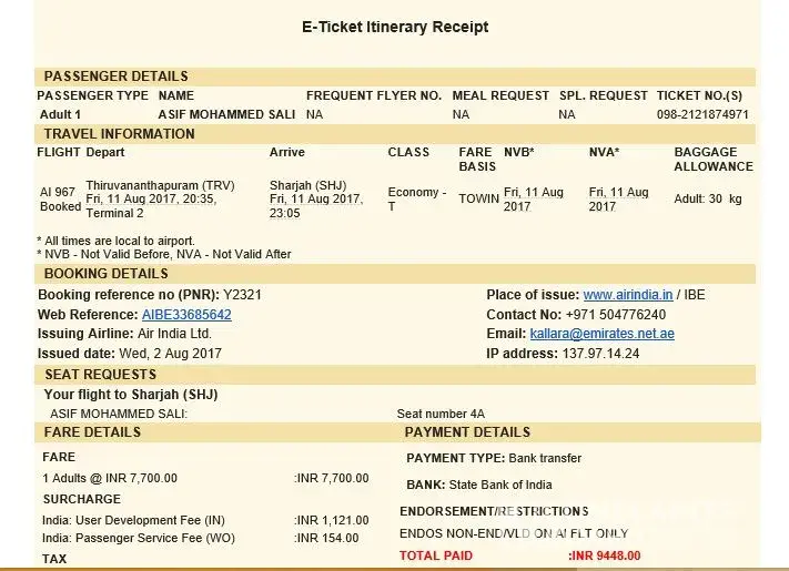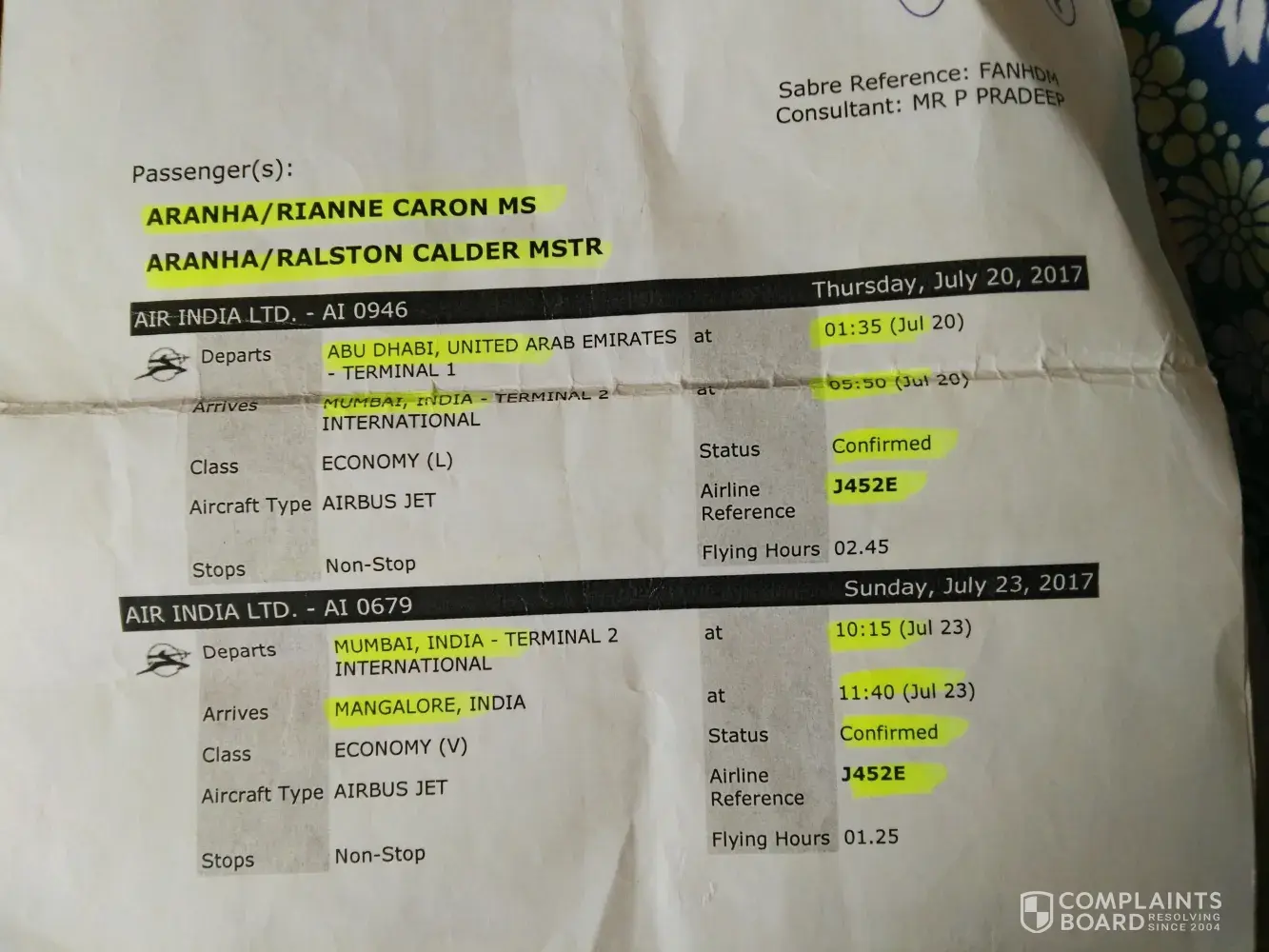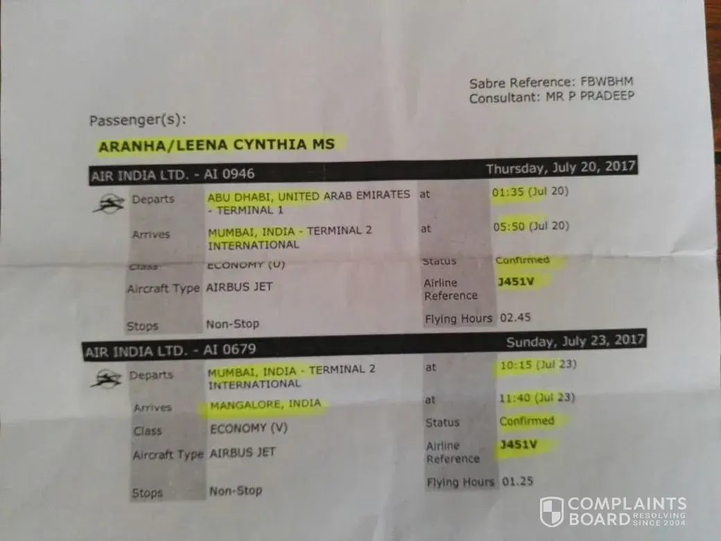 1] At the time of booking the air-tickets, I was told that the baggage allowance from Abu Dhabi to Mumbai is 30 Kgs. per ticket. And from Mumbai to Mangalore too, is 30 kgs per ticket. I was precisely informed from Air India office (Mumbai) by Staff on duty Mr. Prathik that the same is updated in the PNRs of the ticket.