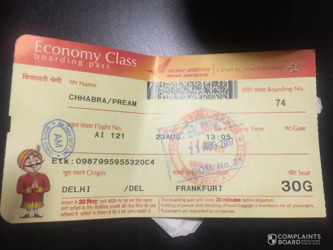 (Sep 6th, 2017) Today morning My Parents (age about 63 and 61 ) tried to travel through Air India from Delhi to Vijayawada as per the attached Ticket form airport Terminal-3, Gate No:3.( Flight No:AI-459, PNR No: Y1NWP, Ticket No: 098-[protected], 098-[protected]).