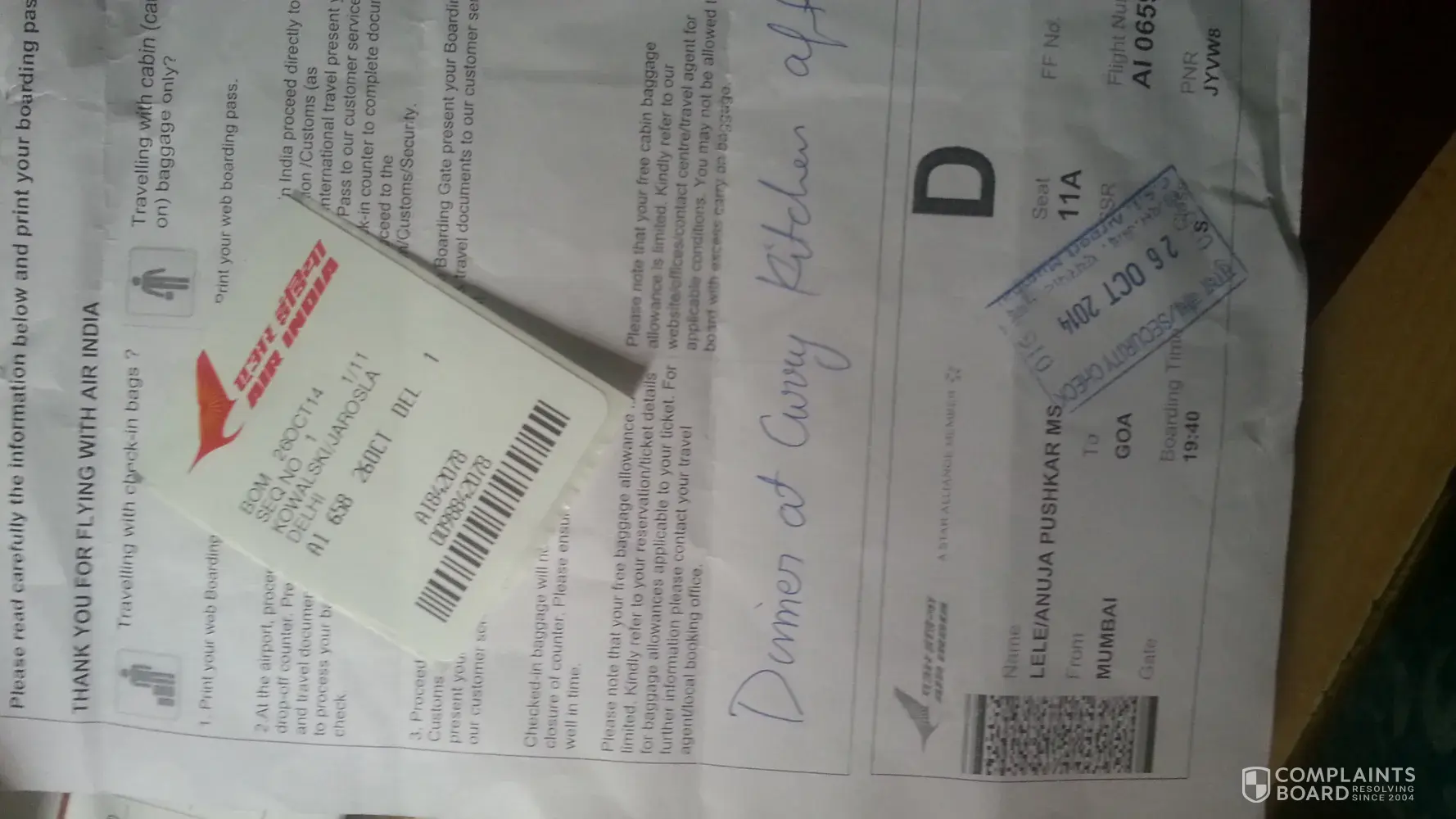 I had an AIR India flight from GOA - Bangalore at 04:00 am from GOA (see boarding pass attached) at 04:00 am.