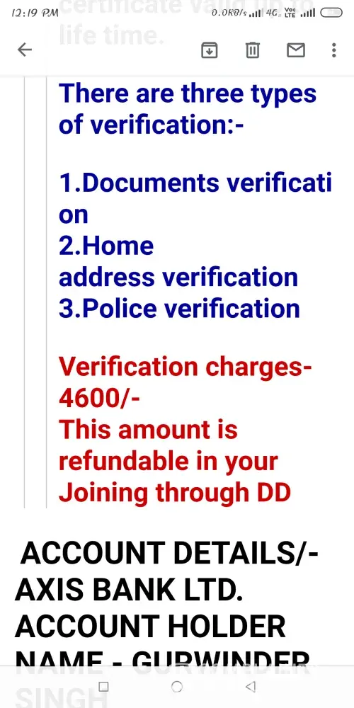 Then he told me to pay (2500) and sent receipt or screen shots of online transactions.so i believed him then sent rs.2500 via Google to above mentioned account. After that i asked him letter. Then his mind changed again he asked me verification Processing fee @4600 and it's also refundable in 1st month of salary, so i had paid rs.@4600 via Google pay and he said to pay for providing a punching card and employee id card which is issued by my name. This amount is refundable after three months.i will pay @(11, 700) rupees, he said don't worry we air india do not do such thing pay till today i will dispatch letter today. I asked him where letter, I got a offer letter.oct 1st is my joining Date. Now i call To Munika mam.she will not be responding my calls. So what i will do? Am i lost my (2500+4600+11700) rupees, totally 18, 800rupees. How can i return back this amount?