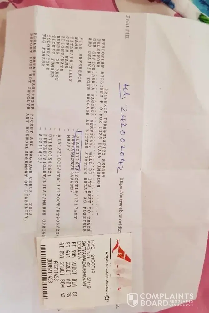 I have travelled from hyderabad airport on 21st october 2019 to mumbai where i have a connecting flight to douala, cameroon, west africa via ethiopion airlines.