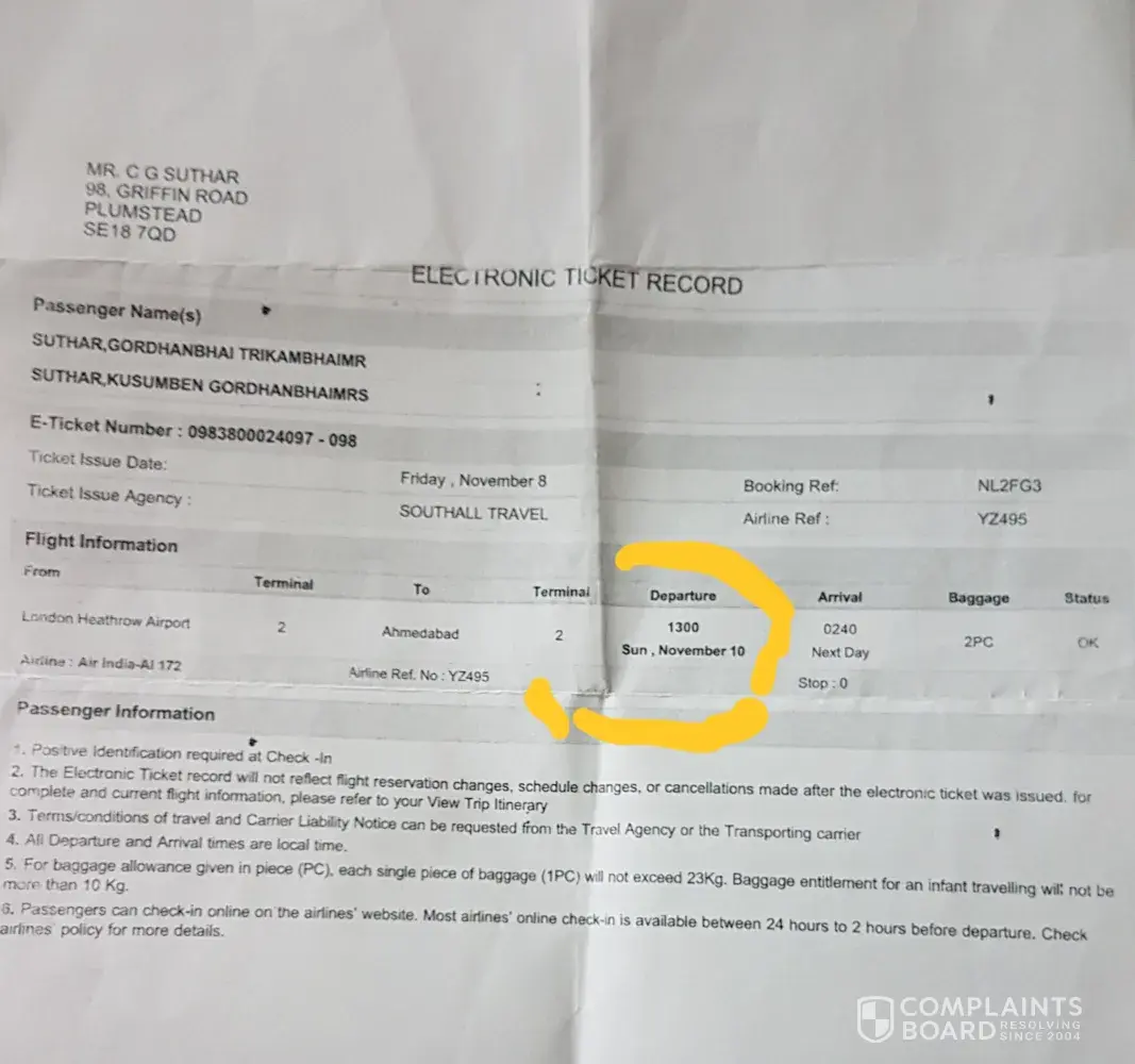 He was coming to india with my mother on 11/11/2019 from London to Ahmedabad.