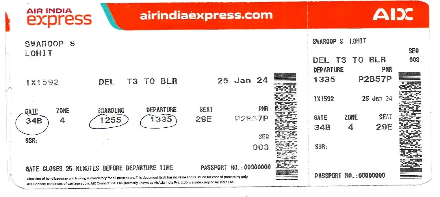 This is for our flight in 2nd Jan 2024 from delhi to Bangalore at 7.50 am.