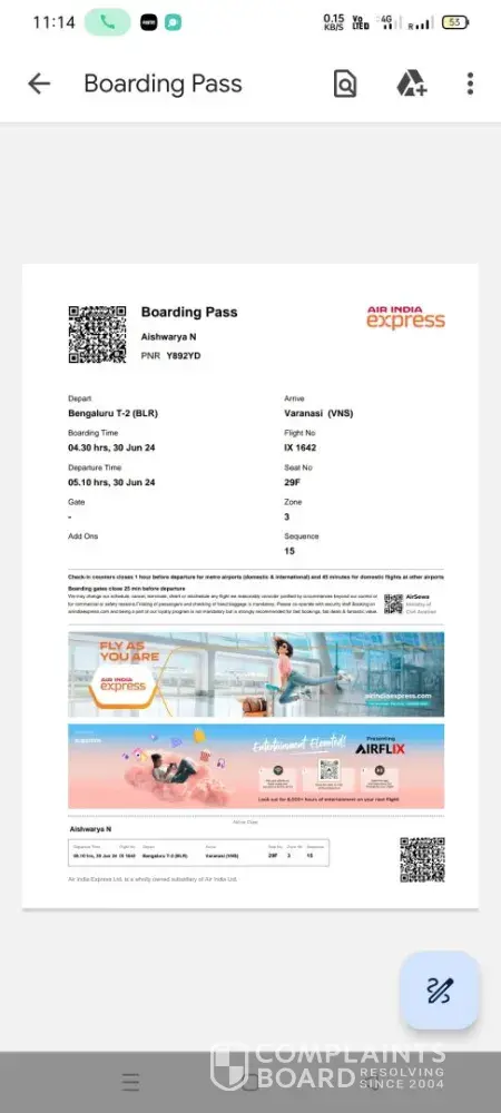 Read full complaint and 1 commentIs Air India Express Legit?