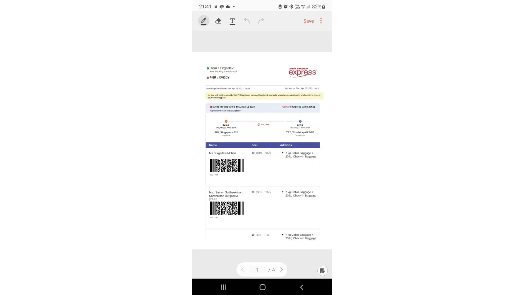 I booked a ticket from Singapore to trichy 2 way for 2 pax