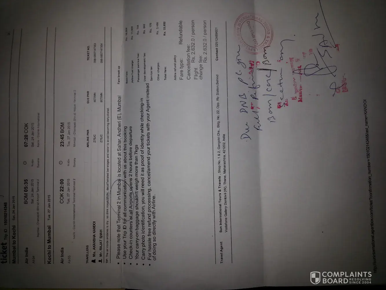 I am Akansha Kandoi. I had booked two air india return ticket from mumbai to cocin of 24th jan 2015. I had reported 55 minutes early before boarding time. So your manager Subash said he had already sold the tickets to a needy couple. And after that flight got delayed by 15mins. He said that either we can give you evening flights on same ticket or we can give u full refund of Rs.33000. So we prefferd to take refund. He gave us in writing about the same and said that it will take 15days and its been more then a month and there is no reply regarding the same. So I request u to look into the matter and let me know asap.