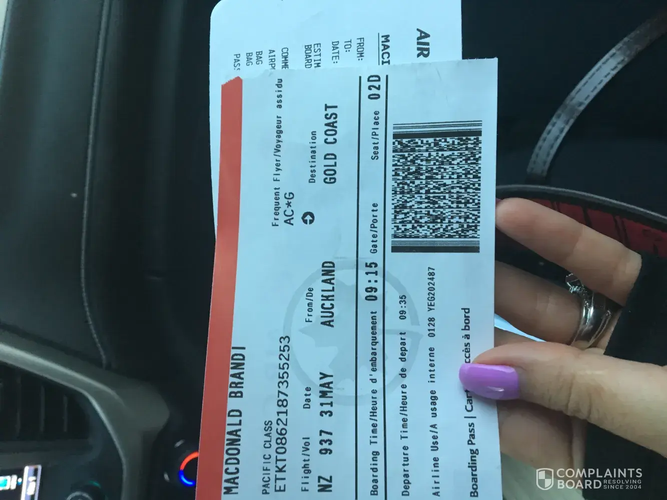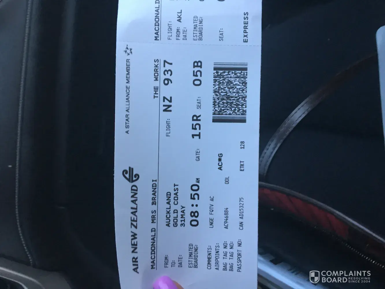 Pictures below of original boarding pass for me( they kept Donald's in Auckland so I only hAve mine but we were ticketed and DOWNGRADED TOGETHER)