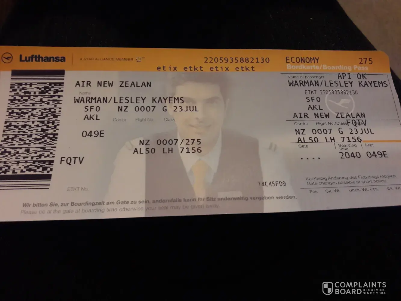 On Wednesday 26 September my family checked in for a flight to Auckland and then on to San Francisco on NZ0008.
