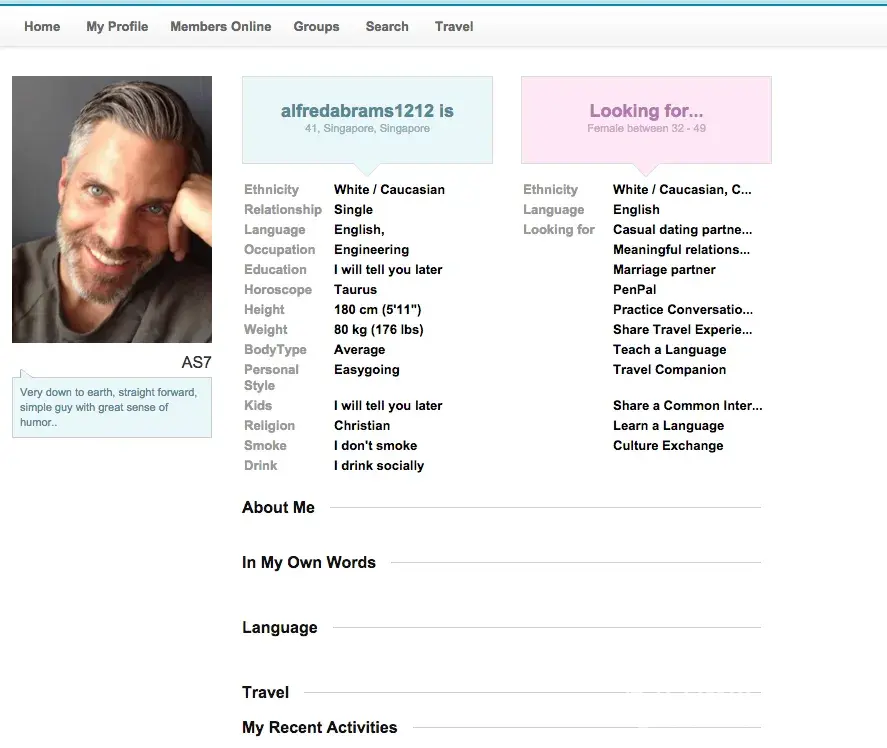 Here is what he wrote me, "Hi, compliments if the day to you and thanks for smiling back. i couldn't help but notice your nice profile especially with such a lovely picture which attracted and enthused me to write you. I am Fred by the way, quite a novice to the ambience and the network, single and ready to mingle :) .i was just browsing through the network when i came across your fascinating profile and couldn't hesitate to admit my interest in you. I don't really get on here due to my busy schedule, nevertheless i believe communication is key to building a great relationship whats so ever. Btw, do you have Line app on your phone? Feel free to write me to add me up, my user id is alfredabrams, you can also write me on my email alfredabrams@outlook.com ...