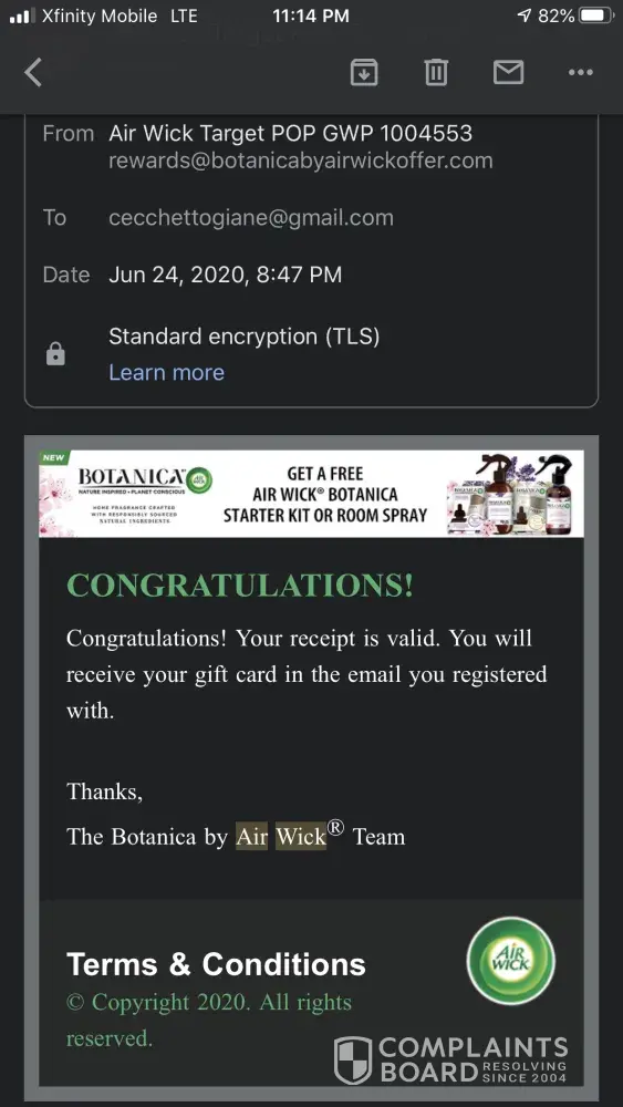 Hi I am filing a complaint about the air wick candle that I have purchased.