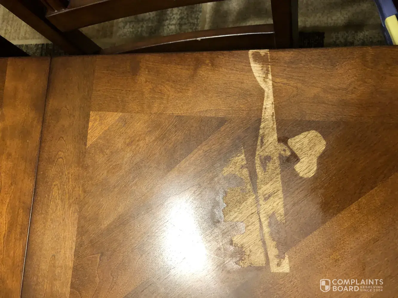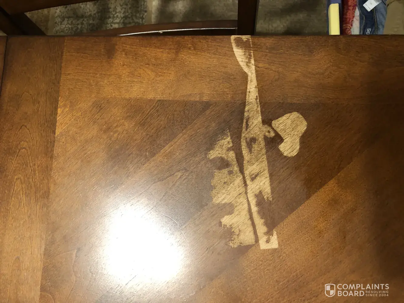 I placed an air wick on a piece of paper on my kitchen table, and it leaked and stripped the color off of my table. I had just recently purchased this table, and this is very upsetting to me. I provided photographs for you to see. Please kindly respond to my concerns.