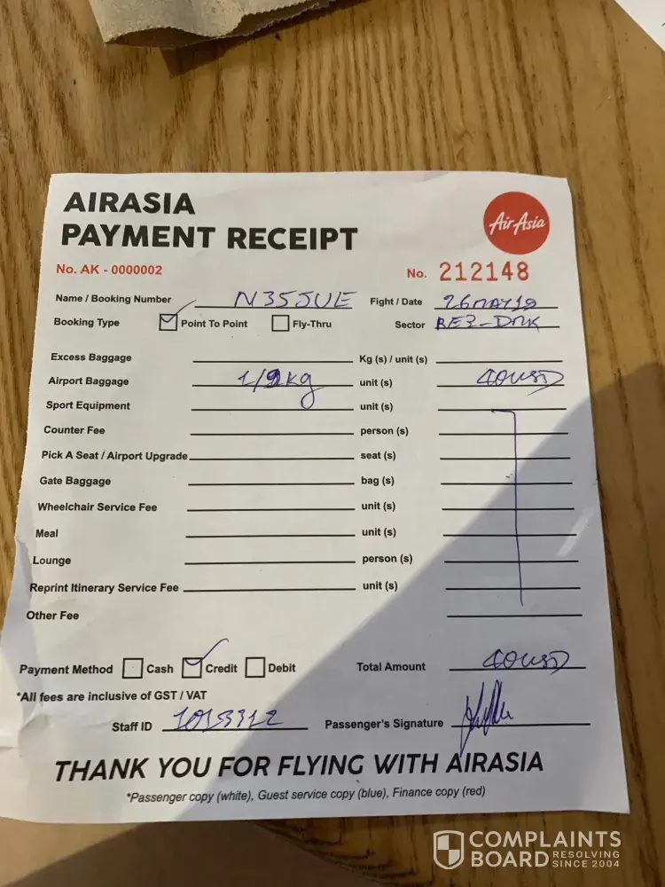 Note: Upon arrival, I spoke to an AirAsia officer in charge of baggage (Shikin), and she saw the bag and took a picture of it. She then advised me to lodge a complaint about it online.