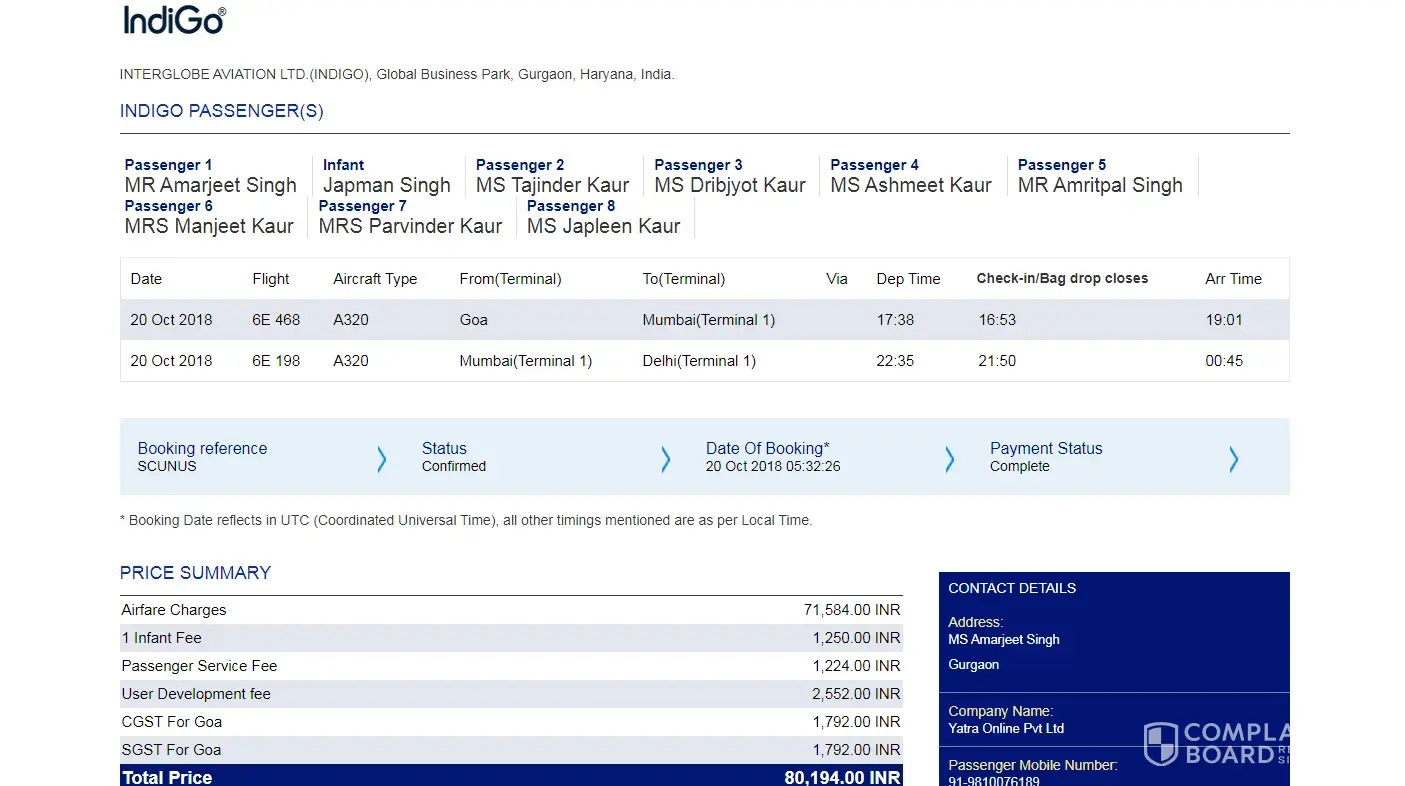 2. Flight fare is too less when we booked and you informed us after one month of booking without any prior intimation.