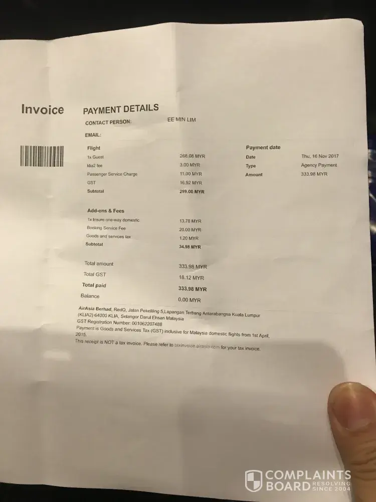 I booked a 2-way ticket on flight D7 215 for my son to depart from Melbourne to KL for his short break. Being a member, I logged on to my A Asia account to do the booking. We have always been encouraged to do so for easy and faster booking arrangement as some of our required information are stored in the system. But the downside of this system is that once you are logged on to your account, you will be named automatically as the travelling passenger unless you remember to change it to the intended passenger. Unfortunately I forget to change and that had made me to become the travelling passenger instead of my son. This is a genuine mistake but A Asia is adamant and had refused to entertain my appeals for the name to be amended to my son's name.