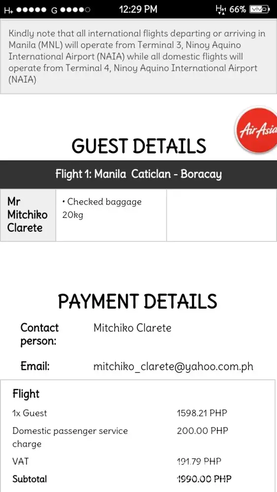 After almost 3 weeks of follow-up, finally got a response from them via email. The content stated that upon investigation they found out "No System Glitch" during the creation of the booking, so much disappointment on their validation despite of the proofs attached, how come they are not valid, do you really considered those?! This is really stressing me out because I have 3 nephews who will suffer for that PM schedule. Another payment for managing the flight worth 20k is driving me crazy, the fault is not in our part, I assure you for that, I have proofs.