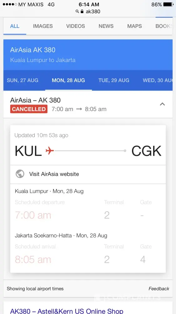 My name is Anggana from KL. Me and my family were planning to travel to Palembang on 30/8/2017. The flight was on 7.05 am.