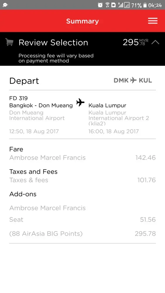 AirAsia booking by points and payment ballooned by 3 times