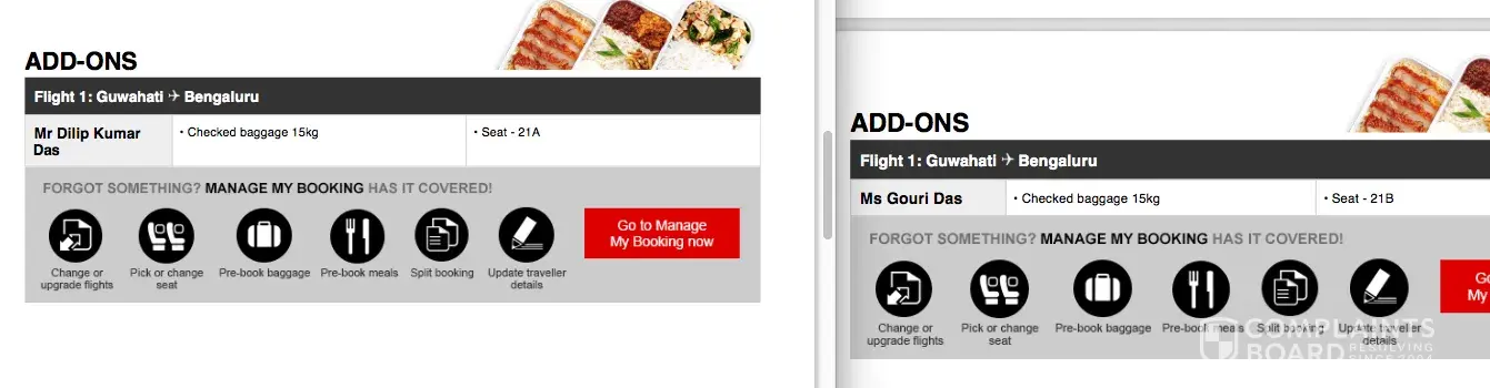 Manage My Booking has a bug and page insists on selecting menu for flight which I have already taken. See screenshot.