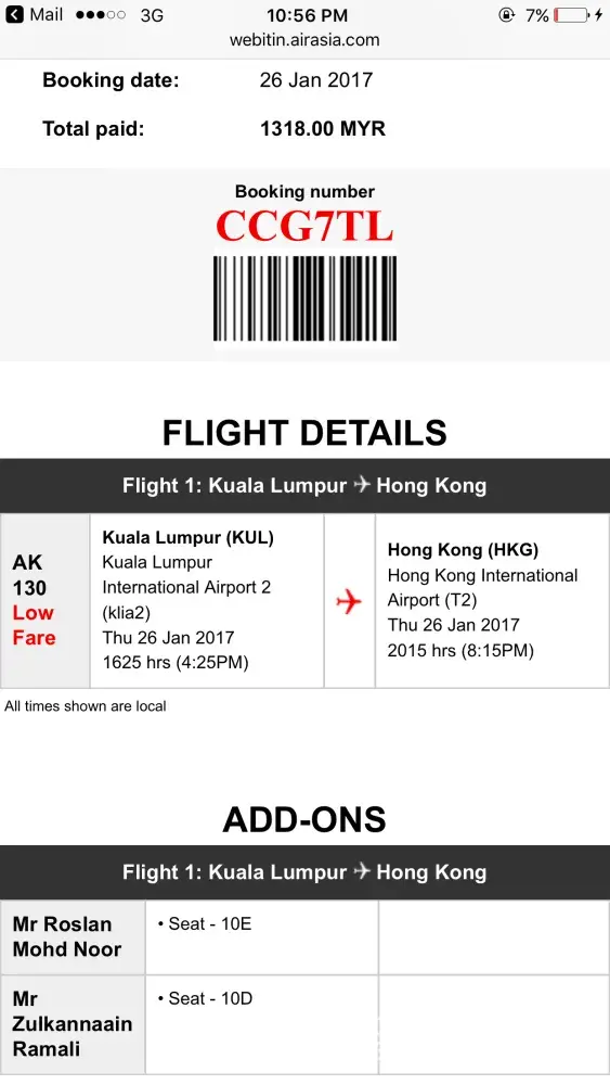 In the end I logged into my air asia account and took a SCREEN SHOOT.