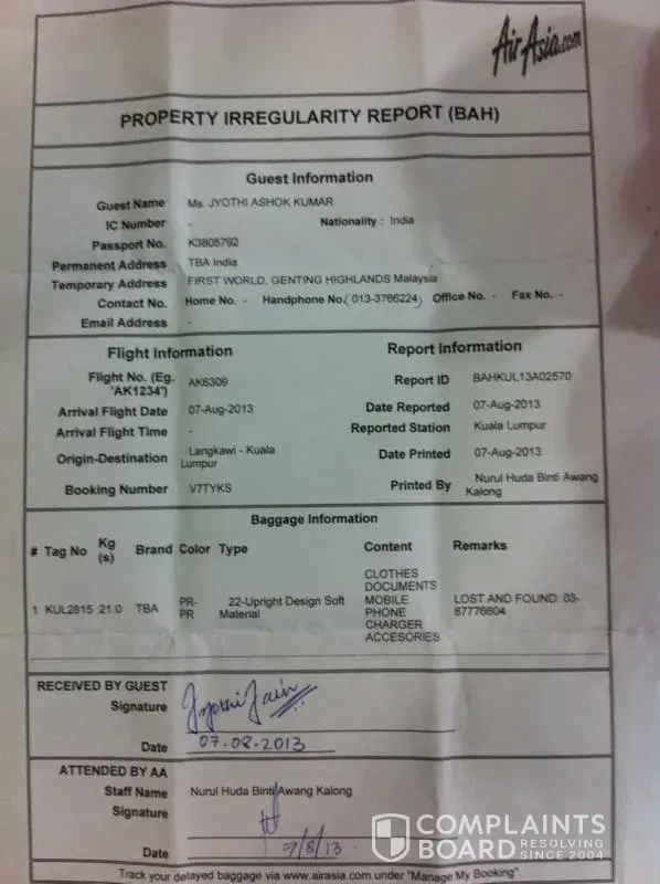 I was a tourist in your country, chose your country to celebrate my honeymoon and in turn i received such shocking responses. I had made more than 15 calls to know the status of the baggage but all in vain and not one single call from anyone from air asia. Being a tourist and a guest in your country, at the least we expected response calls from your lost and found desk. I am sorry to say but air asia has not made any attempt to trace my baggage, which made me go through a spoilt honeymoon. Imagine not having anything in hand and travelling in an unknown country. We had lost all our confidence. We were not left with a single cloth to wear for the rest 13 days of my travel until i did some shopping from kl. I was not even asked if i'm in need of some monetary help. It was the most ridiculous way of treating a guest in your country and also more importantly a guest in your airline company.