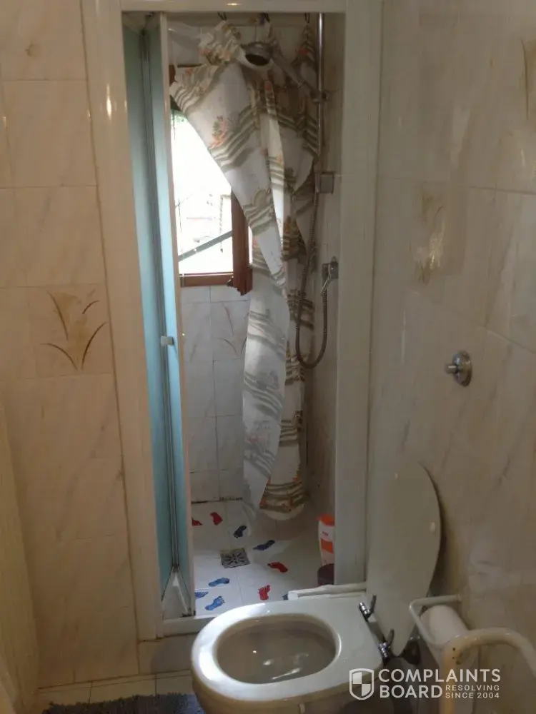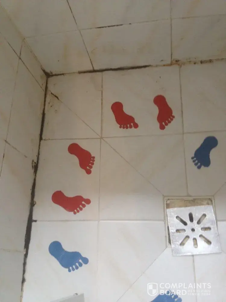 Additionally, the place is filthy. There is black mold running down the shower walls and on its floor. Very disgusting. Take a look and laugh at the pictures!