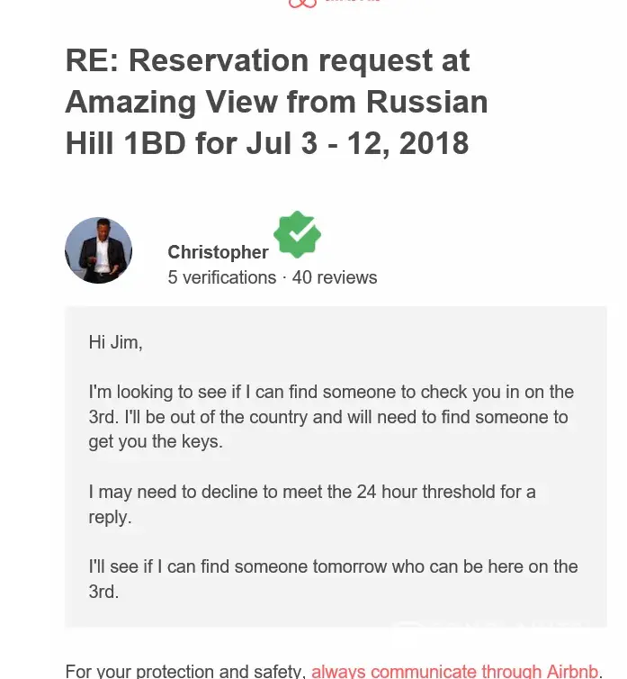 gets an email that he doesn't have anyone to let me into the apartment ?