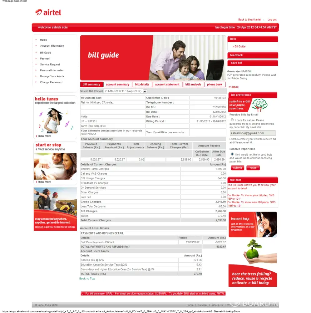 Ref: Email dated 25-03-2012, expressing concern regarding GPRS charges on your airtel mobile number [protected].