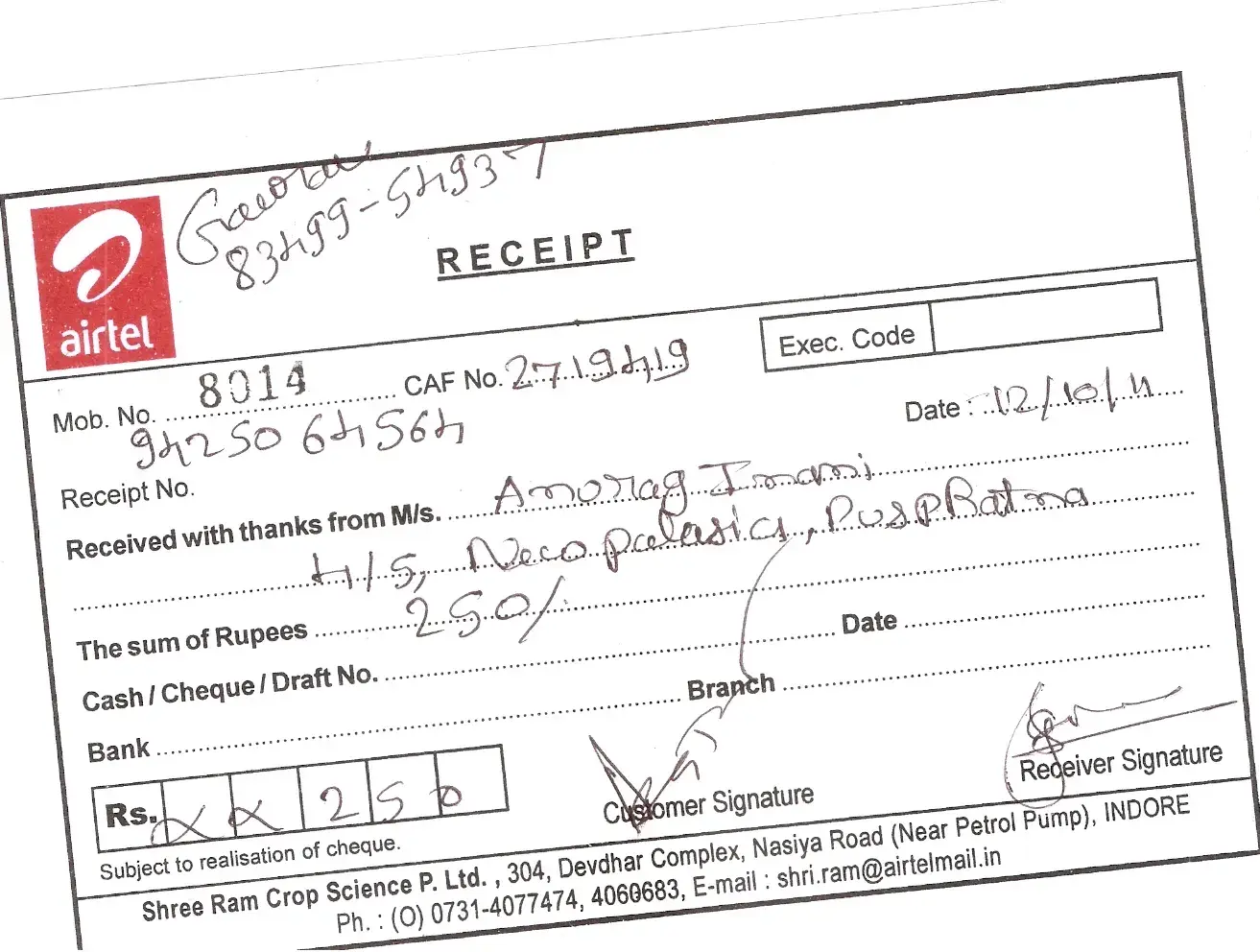 This is not the first time that I have informed Airtel about our problem, I am pasting series of emails which I have sent since 27.07.2011 .Actually if Airtel does it for a corporate Govt. sector company, then God is savour for other customers.This is best example of worst customer service ever in telecom industry.Anyways my contact details are as ([protected], email: arifhshah@hpcl.co.in)...