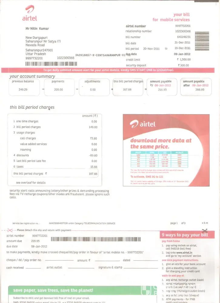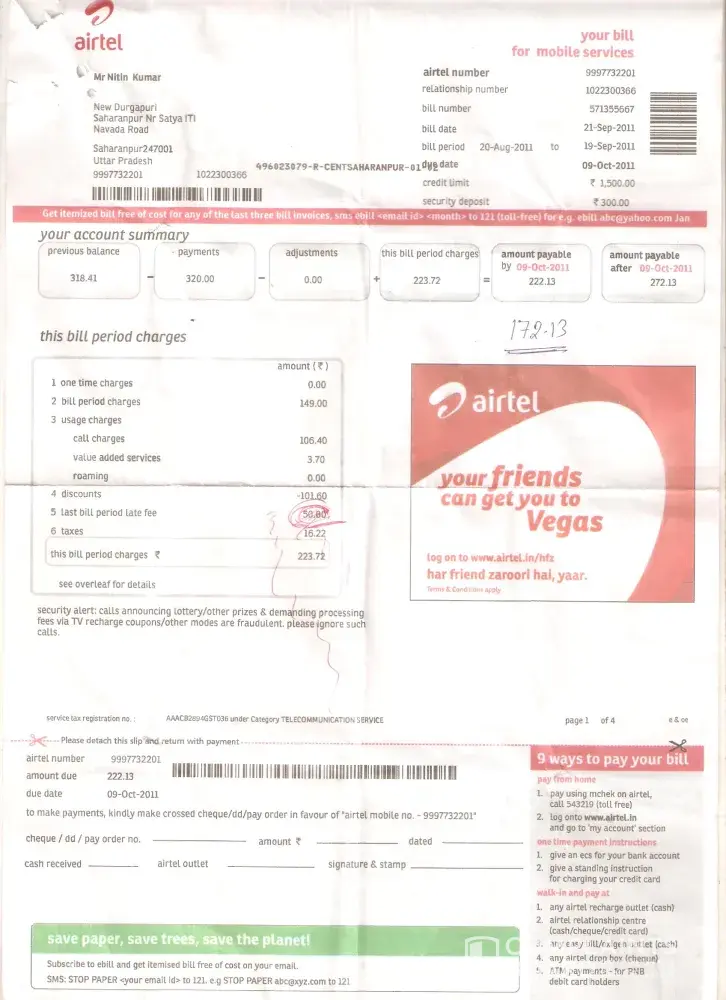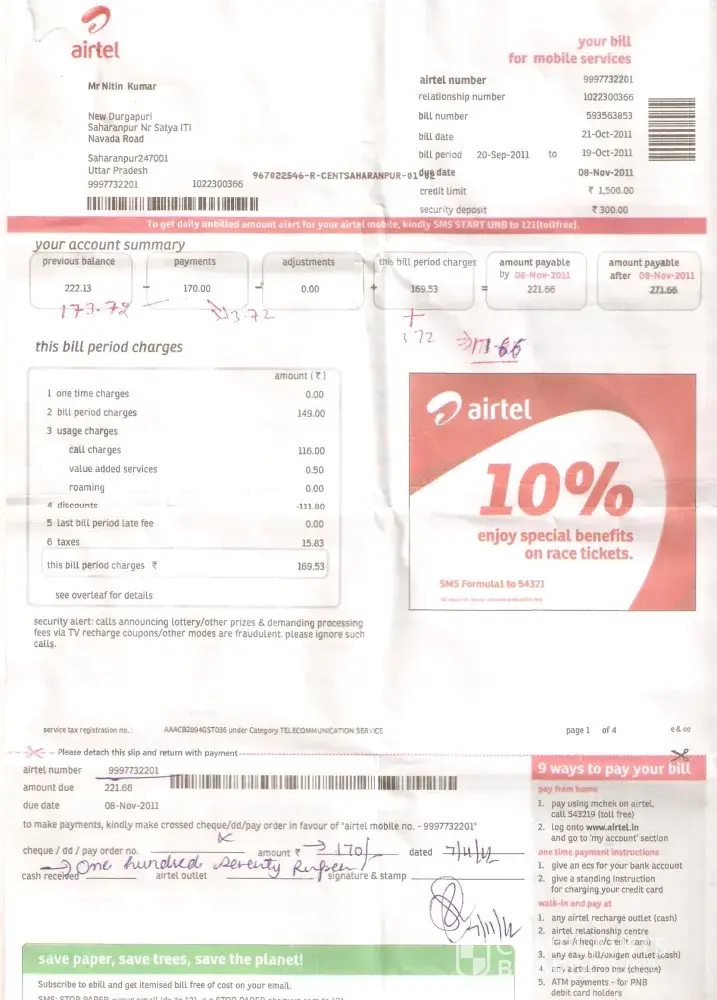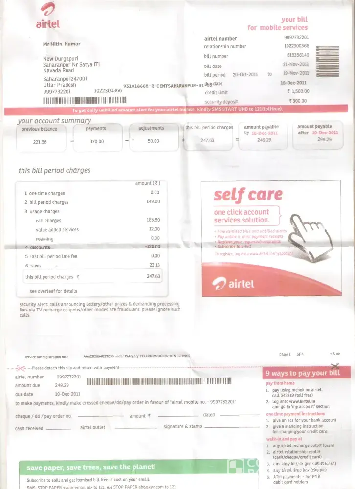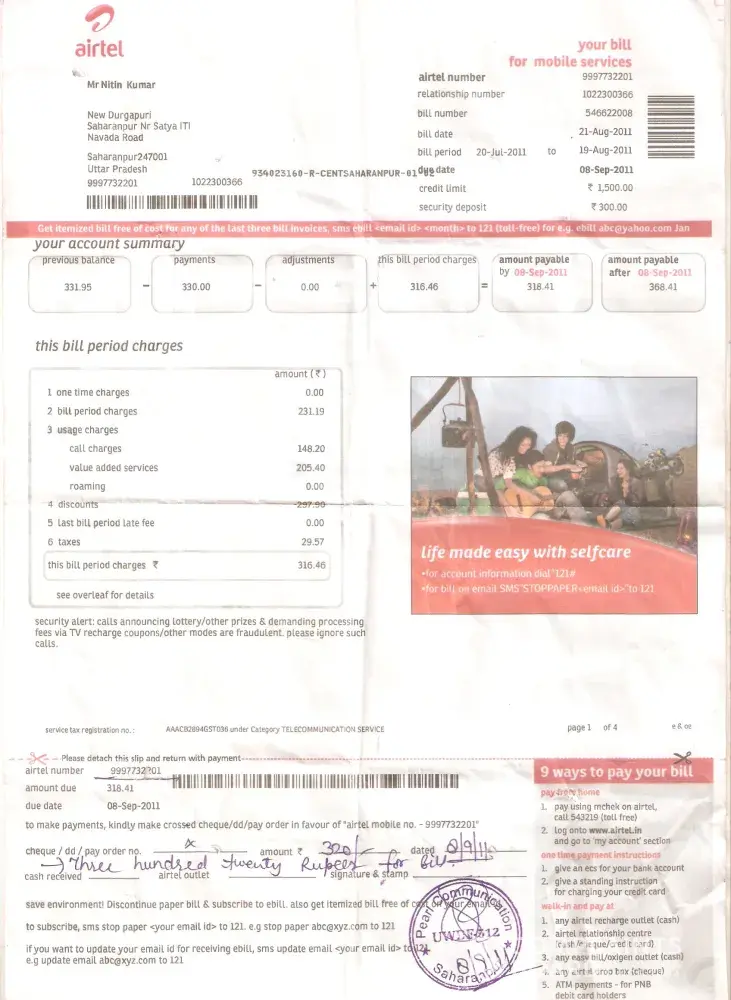Airtel airtel pospaid bill