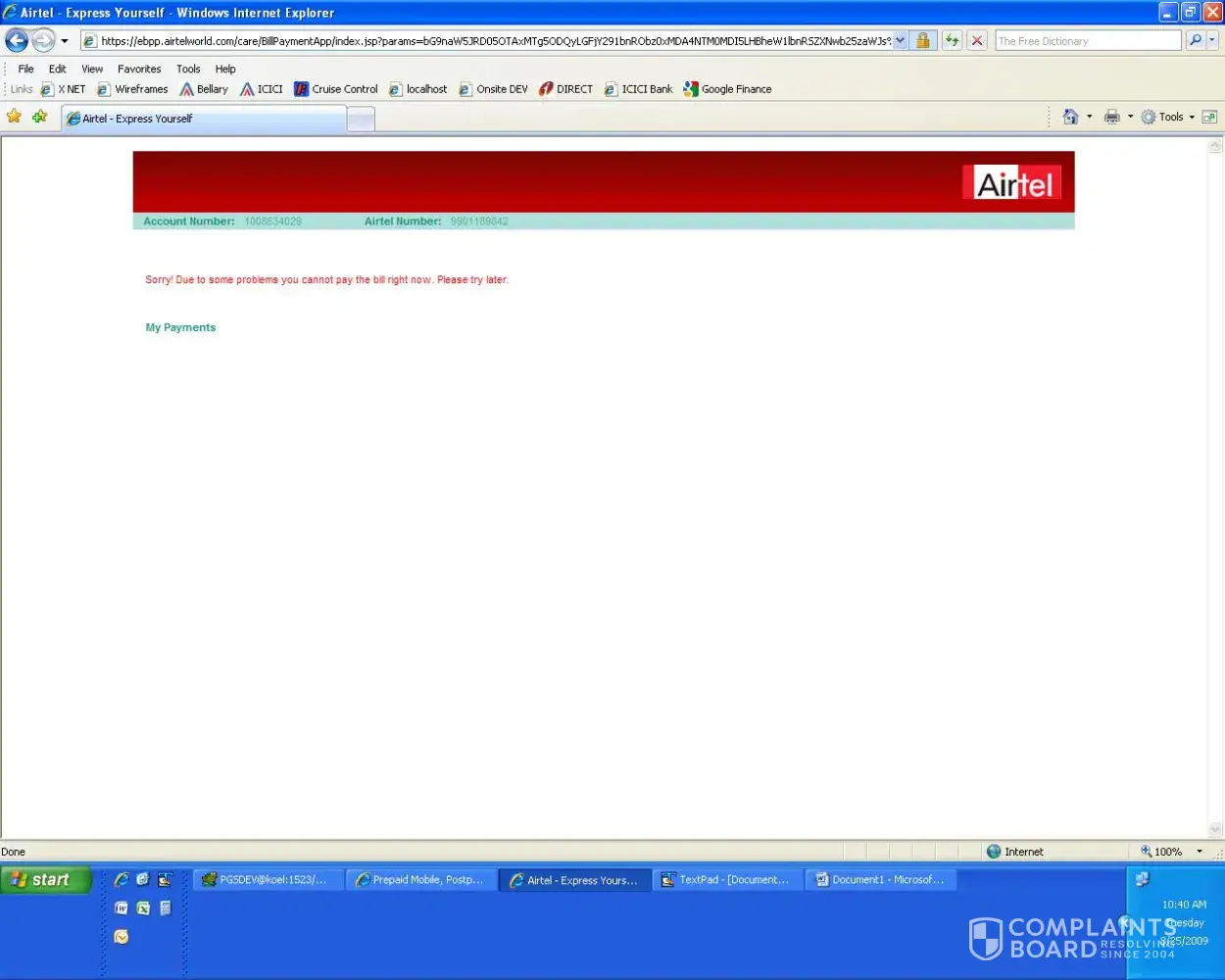 7-Sep-09, what Is the status of my complaint they told me that you have downloaded and you have to pay for this.