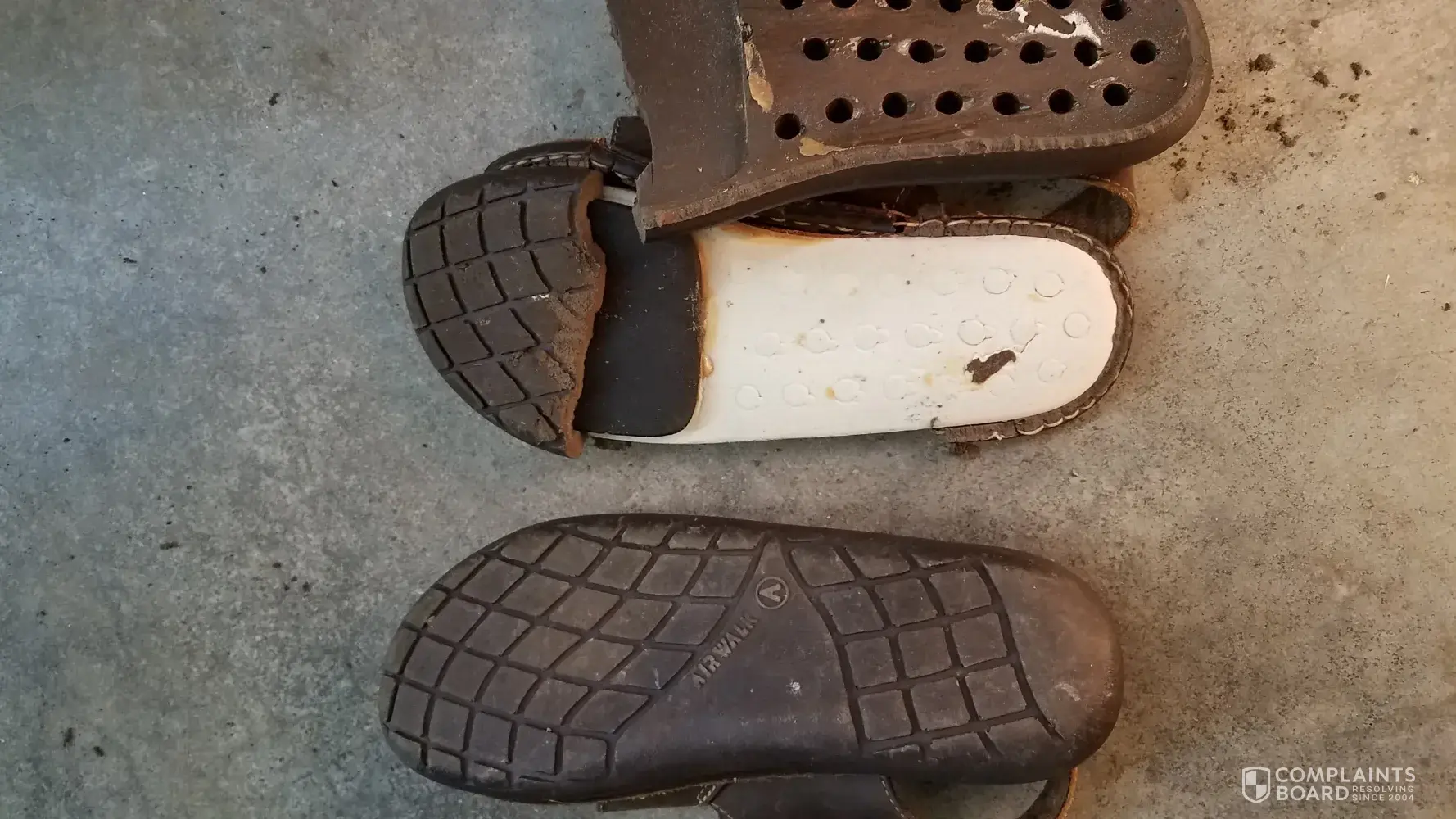 Barely used and well cared for leather sandels that all of a sudden fell apart as the sole let loose. They were very comfortable and I was happy with how they did have an airwalk feel. I would hope that a free replacement would be given since apparently this is a manufacturer issue. I had high hopes and experience up till this point. I hope to hear back on how this will be resolved.