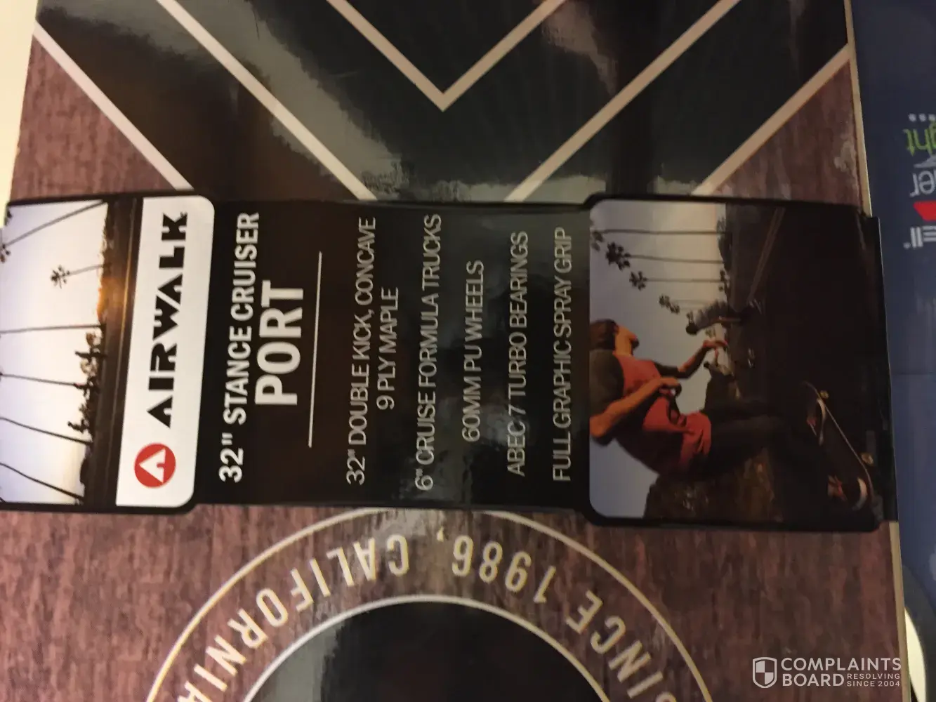 I recently purchased a skateboard from airwalk (32†stance series cruiser port) through dick’s, and the skateboard I received was a different one than pictured. I looked up the name of the skateboard on google images, various websites, etc. And the only picture I could find was of the skateboard I was expecting. Clearly this isn’t any store’s fault, but airwalk itself. This is false advertising