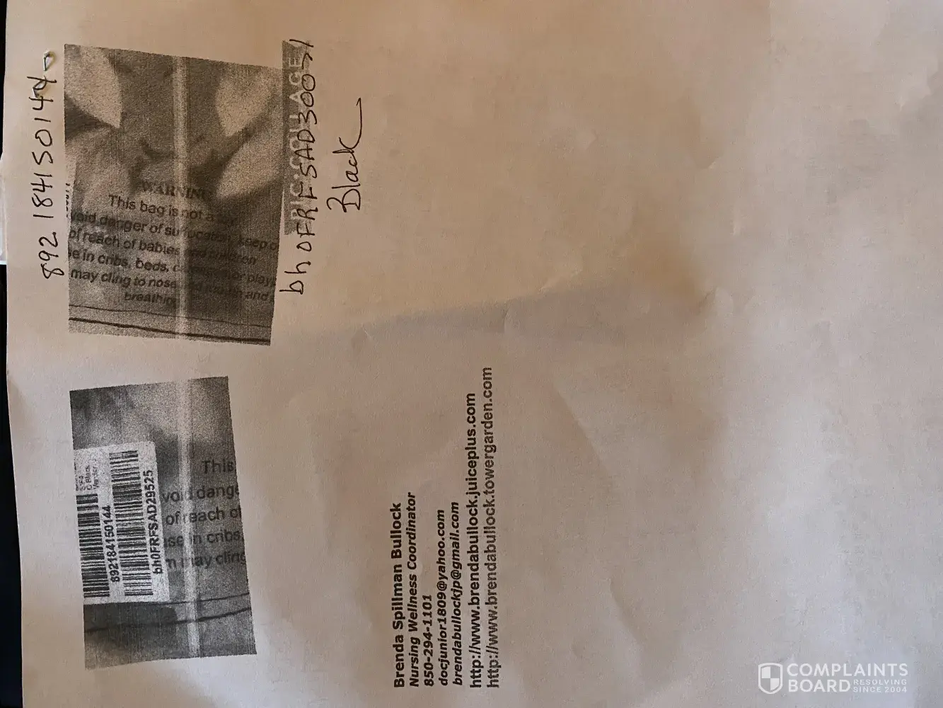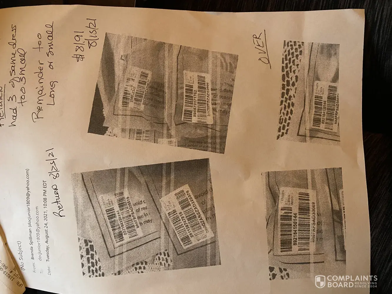 I have pictures of bar codes on all clothing packages that were received and returned in same packages.