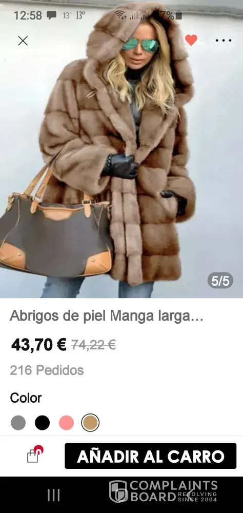 Buenos dÃas ayer compre un abrigo de piel marrón de piel talla L.