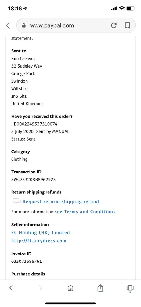 i made and payed for an order of clothes but i have not yet received anything and i dont have any information from Airy dress ZC Holding about shipment