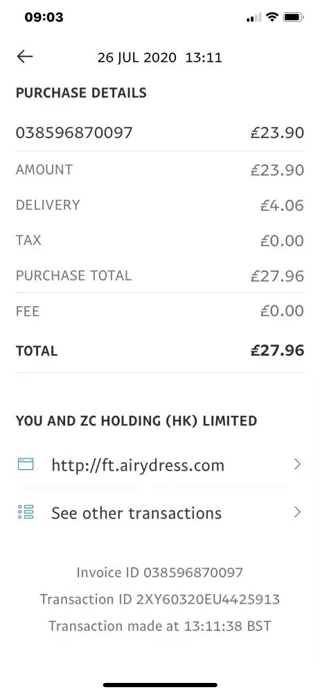 I have ordered items from airydress and even although I cancelled orders the company have taken £152 from my bank account.