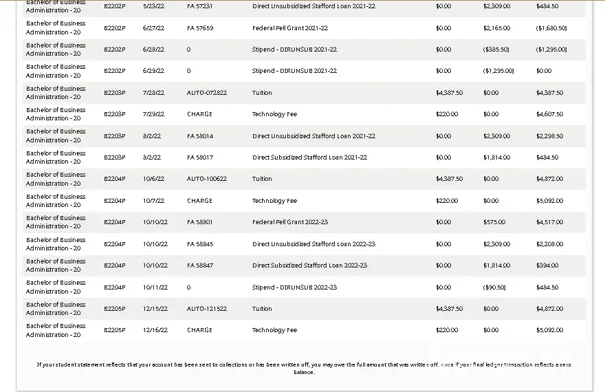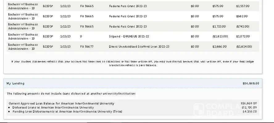 I've already invested $60,000 and have 4 classes left and they are doing something similar, my ledger has changed several times since december, and now all of a sudden I have a $10,000 dollar debt with the school, and they have blocked me from my clsses that start tuesday until paid in full. Which I was unaware of any of this until the 13th of january. And they've pocketed my most recent disbursement. Luckily when I noticed the fishy stuff in December I started getting regular screen shots of my accounts & dashboard to prove myself if the time came. They attempted to say they were going to send me an associates degree, like I was just gonna settle on out of school or something, and I refused them. So here we are a month later, and they pulling something.