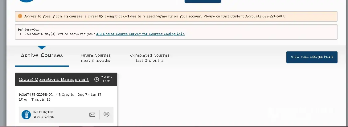 This AIU is a Scam. I attended was working for my BA in Bus management. When I was contacted about AIU I asked them if my military grants would be accepted. The "advisor" that I talked to told me that they would without a doubt since there office was in Hoffman Estates, IL ( My Veterns grants are only good in IL). I did the whole pony and dog show they ask you to do get admistered and was looking forward to completing my degree. Note: I lived in a small town with the nearest brick and mortar school was an hour one way drive time, and I worked 2nd shift in a factory. One thing the Advisor told me "If you ever need to drop out of class then you only owe what is on your account the day you drop out". Months went by and I was on top of my game submitting reports and getting A's across the board. Then I got the bills coming in I called the advisor that I had talked to and that gave me his contacts and I was transfered to someone else without even taking to the first guy. I explianed about the bills and told them that they needed to go to ISAC and they would get paid. I was then told that "Since AIU is actually in Buckheed, GA my grants are not valid". I told them this was not what I was told before registering and I was not expecting to pay them out of my pocket. After a little conferece call with finaical Aid they submitted me forms for Sallie Mae Fed loans and arranged to take my GI Bill money that I had about 600 left on. After that I agreed to make payments every month to catch myself up. After working a 7 days a week with no time off, getting home about 1 am and hitting the computer untill 3am I found myself 4 pages shy of a full report that needed to be turned in, I figured if I turned something in and get some points that would be better then no points. So I submitted a report of 3 pages that was suppose to be 7 pages and the stucture was complete shambles clearly due a grade of D if not an F. The next night I got on and to my suprise what was my grade buy 100/100. This is when AIU started smelling funny. Then I got laid off of my job and the world started crashing. I got farther behind and final gave up on my dreams of finishing my Degree. I called the advisors to see if I can get any help or asstiants because I was not ready to die yet, but all they could say was they needed 1000 dollars today or I was done. I asked them how much do I exactly owed and they said 2000 dollars. I told them that I would just drop out today and get in contact with whoever so I can make aggrangements to pay the 2000 and be done. After roughly a month I got a call from AIU wanting payment I told them I needed to set up payments and I was told that they needed 1000 dollars to set up payments, I told that guy if I had $1000 to set up payments I would not needed to drop out of class. He told me that is all they could do for me and said he would send the info. 4 months later I recieved in the mail a bill from AIU stating I owe them $6, 900. They had charged me the rest of the classes that I had not taken. After trying to get this straighting and realizing I had been scammed things quited down. I got nothing from AIU and they justed seemed to fade away until this morning 3 yrs later. I went and applied for a VA home loan and was turned down due to a recent logged creditor stating I owe them $6, 900 to AIU.