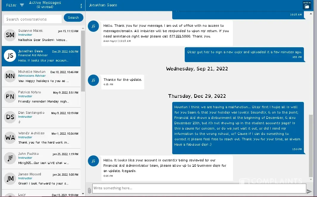 I have read a lot of the complaints and I agree with some of them, One of my complaints against AIU is Financial Aid, and the idoits who can't tell you much about what is going on with your account and why is it taking for every for them to post your loans along with your stipend. It should be a number that we can get as students, so we can call and make a written complaint against the school. They tell you that your loans will be posted on a certain day, and when you check your account, nothing has been posted and you have to wait weeks after or call and complain to get any kind of results. Don't get me wrong, I like the fact that I can get my degree in such a short time and the instructors aren't so bad. But I do feel that AIU financial aid department is scamming the students. A lot of the students who are unemployeed look for there stipend check to help out in there households, and for AIU to fall flat on their faces when it comes to taking care of their students is mind blowing to me. At this point, I would not recommend any of my friends or family to attend this school. If your looking for a school to attend and your unemployeed and need the loans to help you out financially along the way, this is not the school for you, try somewhere else. But, if you have a job and your willing to put in the hard work and dedication to strive for the degree you are seeking out, and the loans aren't a factor, then AIU may be the college for you.