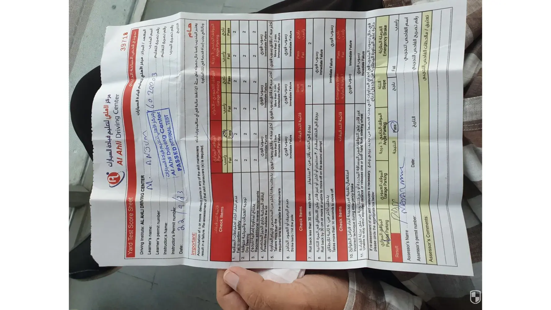 Al Ahli Driving Center I am complaining about assessment test