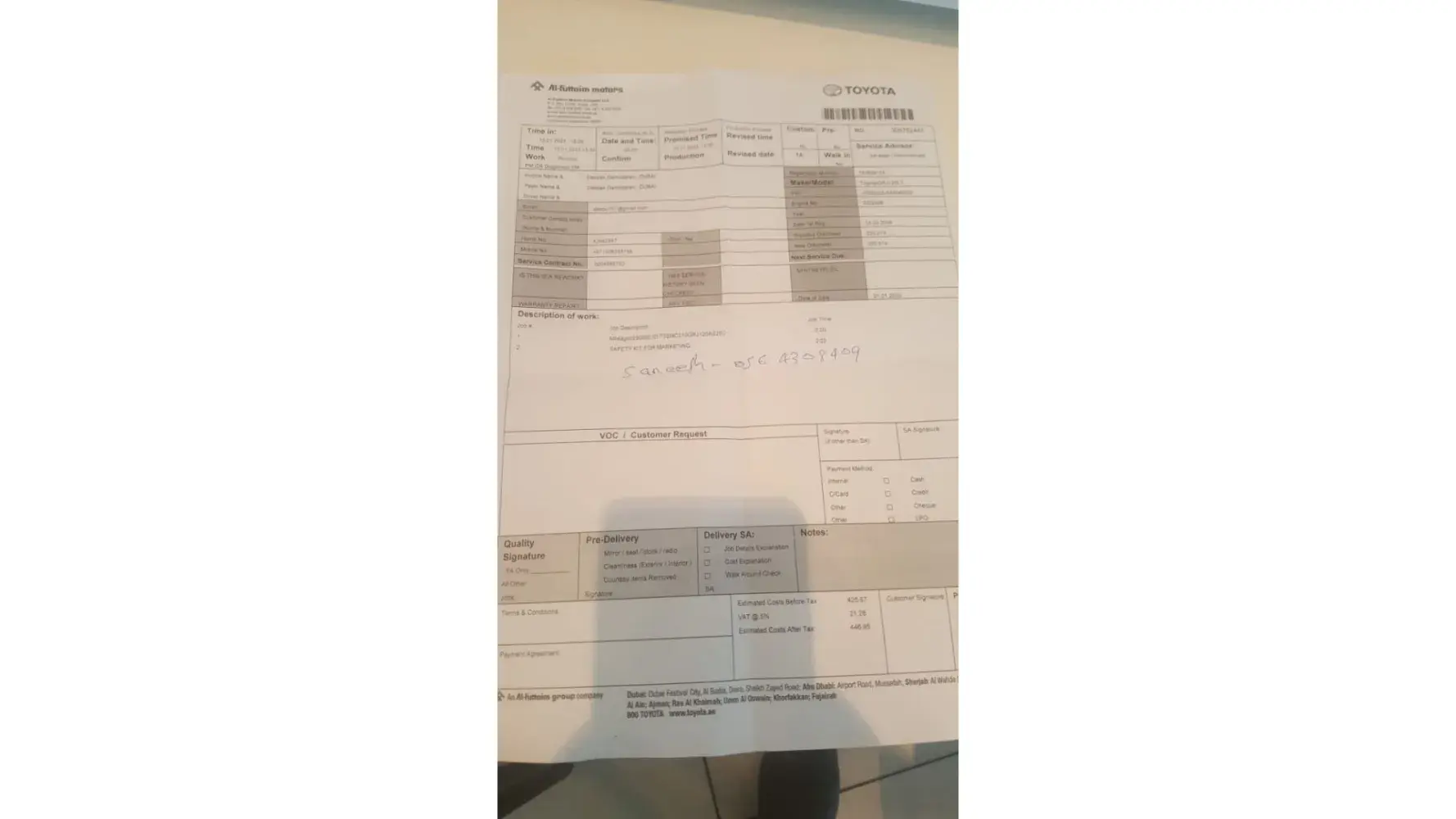 1. The last time I booked a service appointment for my car (100,000km service) at Toyota Abu Dhabi - airport Road, I have highlighted that the air heater was not working and requested the agency to fix it.