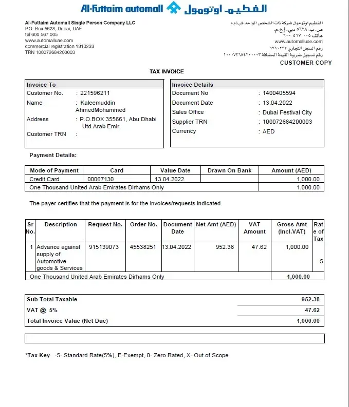 I have deposited AED 1000 in Automall by Al Futtaim, the car booked did not meet my expecations hence I have purchased a car from other vendor.