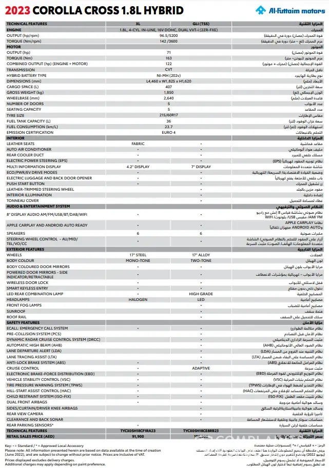 On 1st July 2022, I send whatsapp msg to Mr. Anas at 4:12 to remind him, after an hour he send a voice msg that the link is sent to me to pay AED2000 for booking that immediately I paid and informed to Mr. Anas, after which he send me msg that right now, we are selling 2023 model, no more 2022 and he send me specification 2023 as attached showing new price 106900 and asked me to consider AED 3000 more for shipping and color and received a purchase agreement (attached) which is showing 110900.