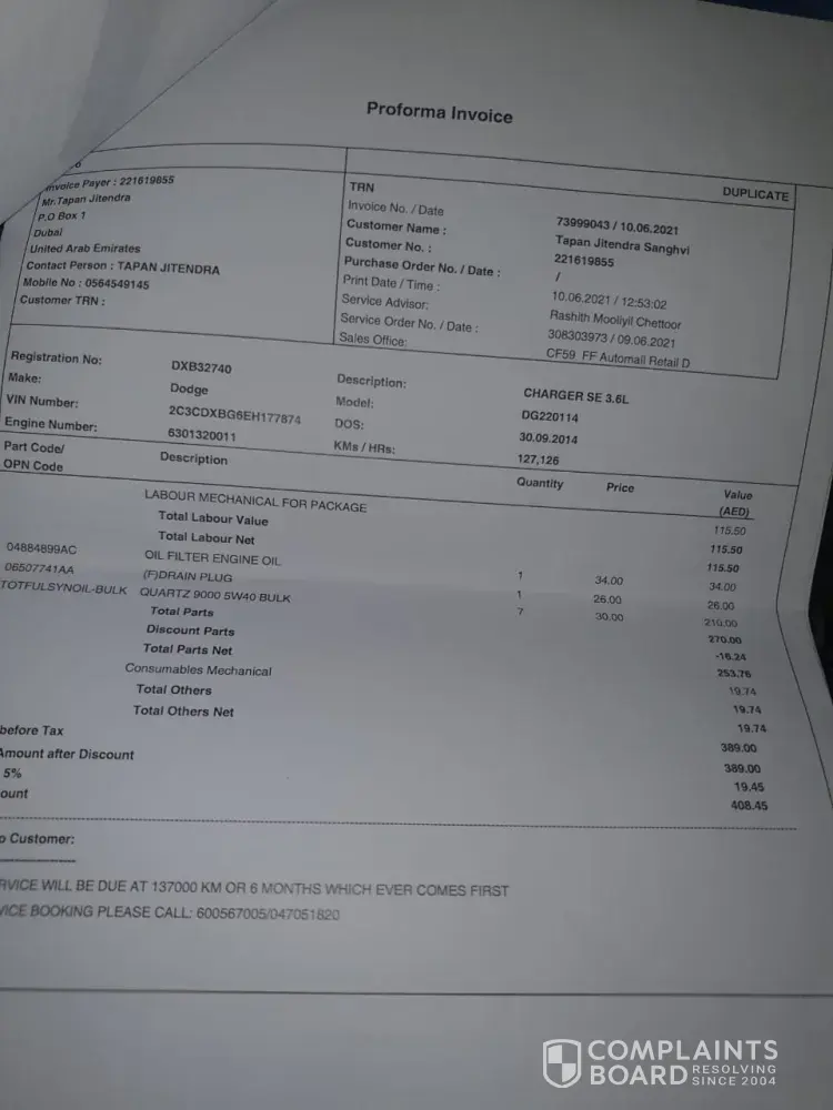 secondly, if they say that 1st service is covered than why have they charged 408 AED after service.