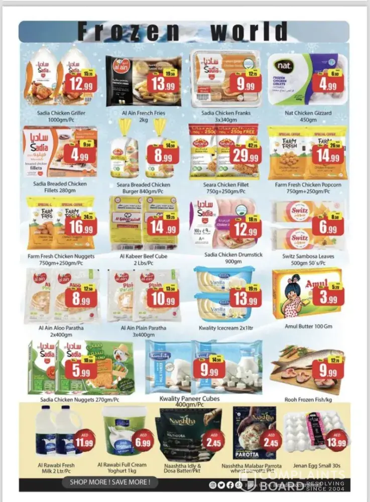 I went to Al Madia hypermarket in Central mall near Sharaf dg metro station. I saw in the booklet of 24,25,26 May 2024 that fresh chiken is 11.99, but unfortunately once I reached there it was 15.99aed and I didnt buy it. On the same booklet Sadia chiken 1000gm its 12.99 and I bought 1200 gm Sadia chiken griller and they cahrged 17.50 aed. Unfortunately I noticed this once I reach home. Kindly clarify this.