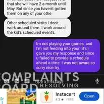 DHR worker Cecilia Goodwin was our second case worker. She started our case and came to my then current apartment in June 2022, but has never come to my next address which I have been at from July 2022 to June 2023x She never provided me with my psych eval results and ignored my ISP requests until a week before court in September 2022. At this meeting she brought in a new allegation "I left my kids alone in my car while working" but would not show evidence of this. She then never spoke to me at our 9/15/2022 court hearing, but walked over to people who have my oldest child in an unrelated case (who I'm not sure why they were let into Strickland as they are NOT a part of my sons' court cases). She spoke with them at length for 5+ hours including going with them to the parking lot giggling and laughing. After the 09/15/2022 court hearing I immediately requested. a new worker and no further contact with