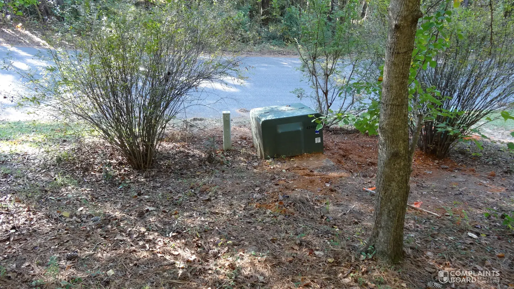 Desired outcome: Reinstall and level distribution box, restore and compact disturbed earth